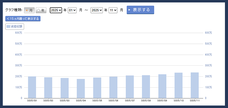 投資した分に比例して、少しづつですが、増えている喜びが感じられます。